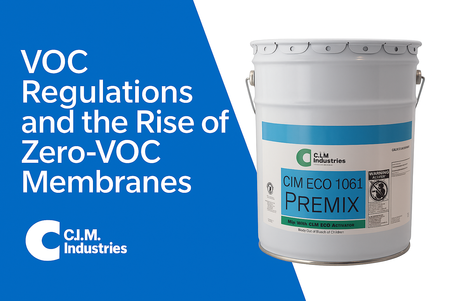 Stricter VOC rules—and the need for healthier, faster jobsites—are pushing owners to zero-VOC waterproofing. CIM’s 100% solids membranes deliver compliance without the solvent odors, while maintaining long-term, elastomeric performance and very low permeability. Use CIM ECO 1000 for zero-VOC, low-odor indoor work, CIM ECO 1061 where NSF/ANSI 61 potable approval is required, and CIM 1000 TG for vertical/overhead areas in potable assemblies—paired with moisture-tolerant, VOC-compliant primers. The result: safer installs, quicker turnarounds, and a seamless barrier that bridges cracks and handles complex details.